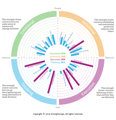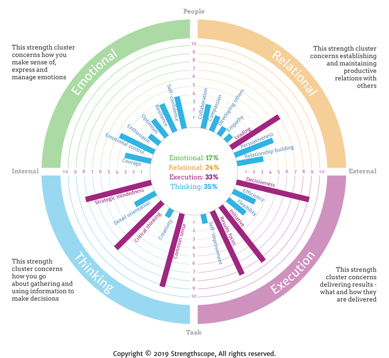 Strengthscope defines strengths as underlying qualities that energise you and that you are great at or have potential to become great at. It helps you to perform at your best every day and allows you to reduce performance risks – all by developing what already exists inside of you.